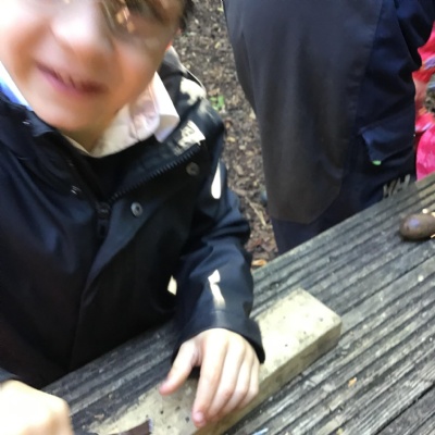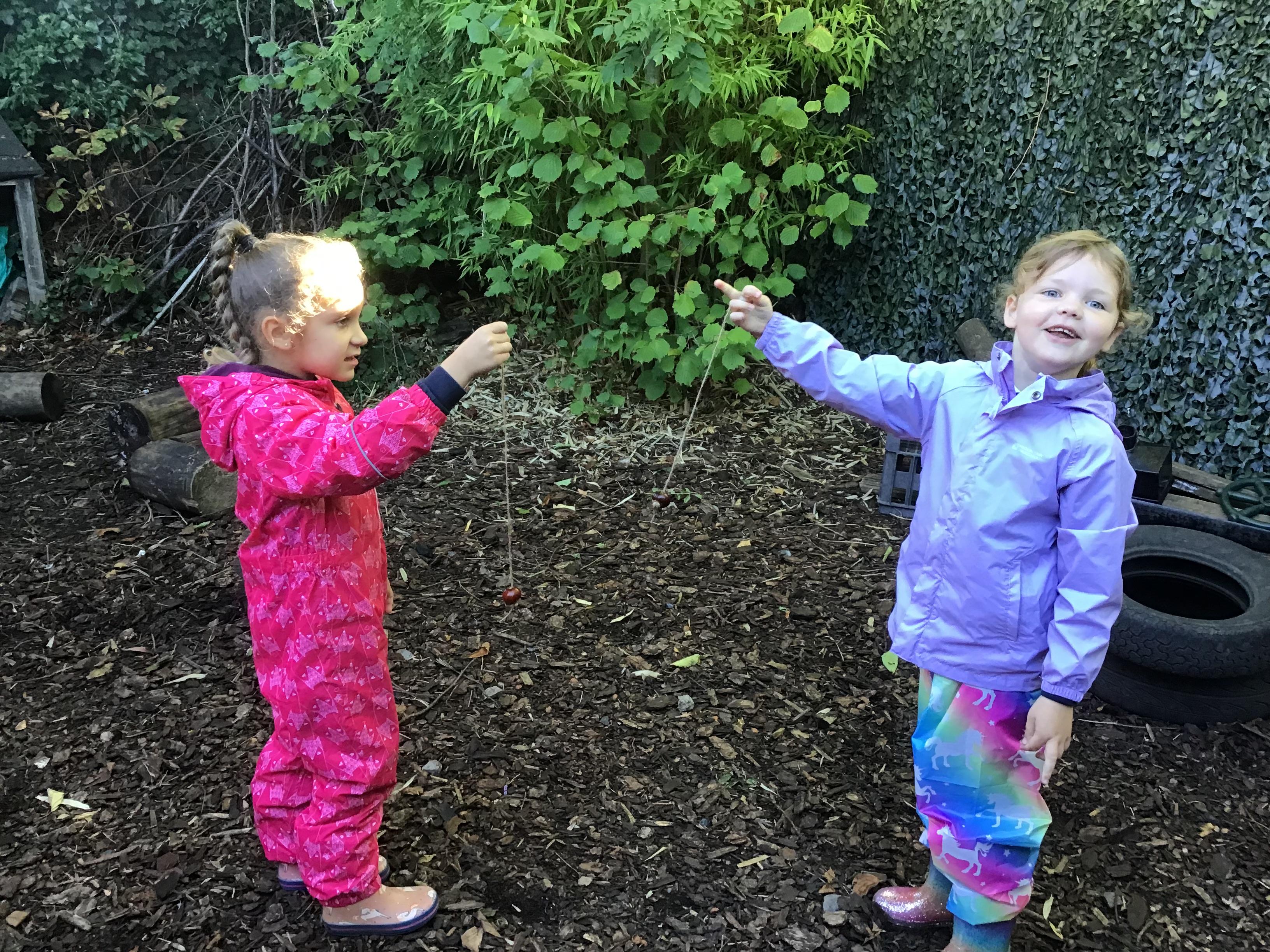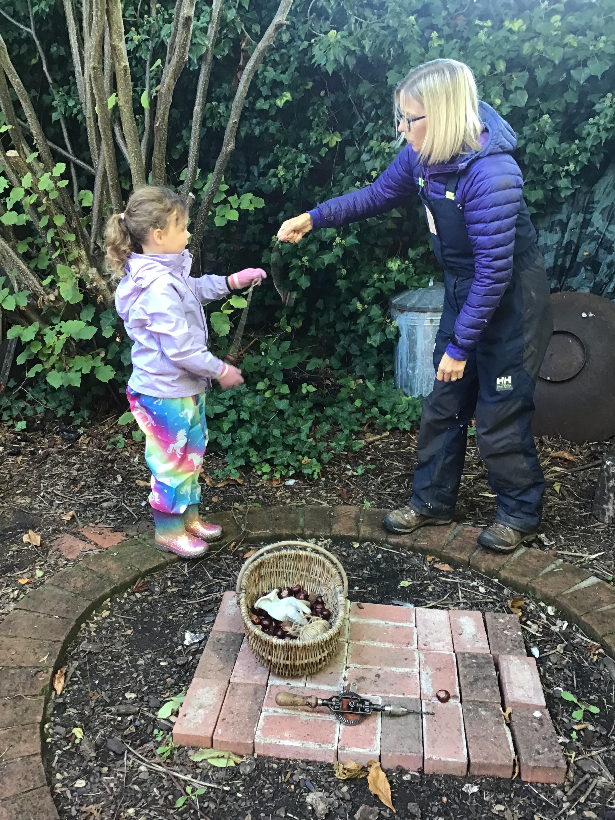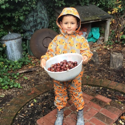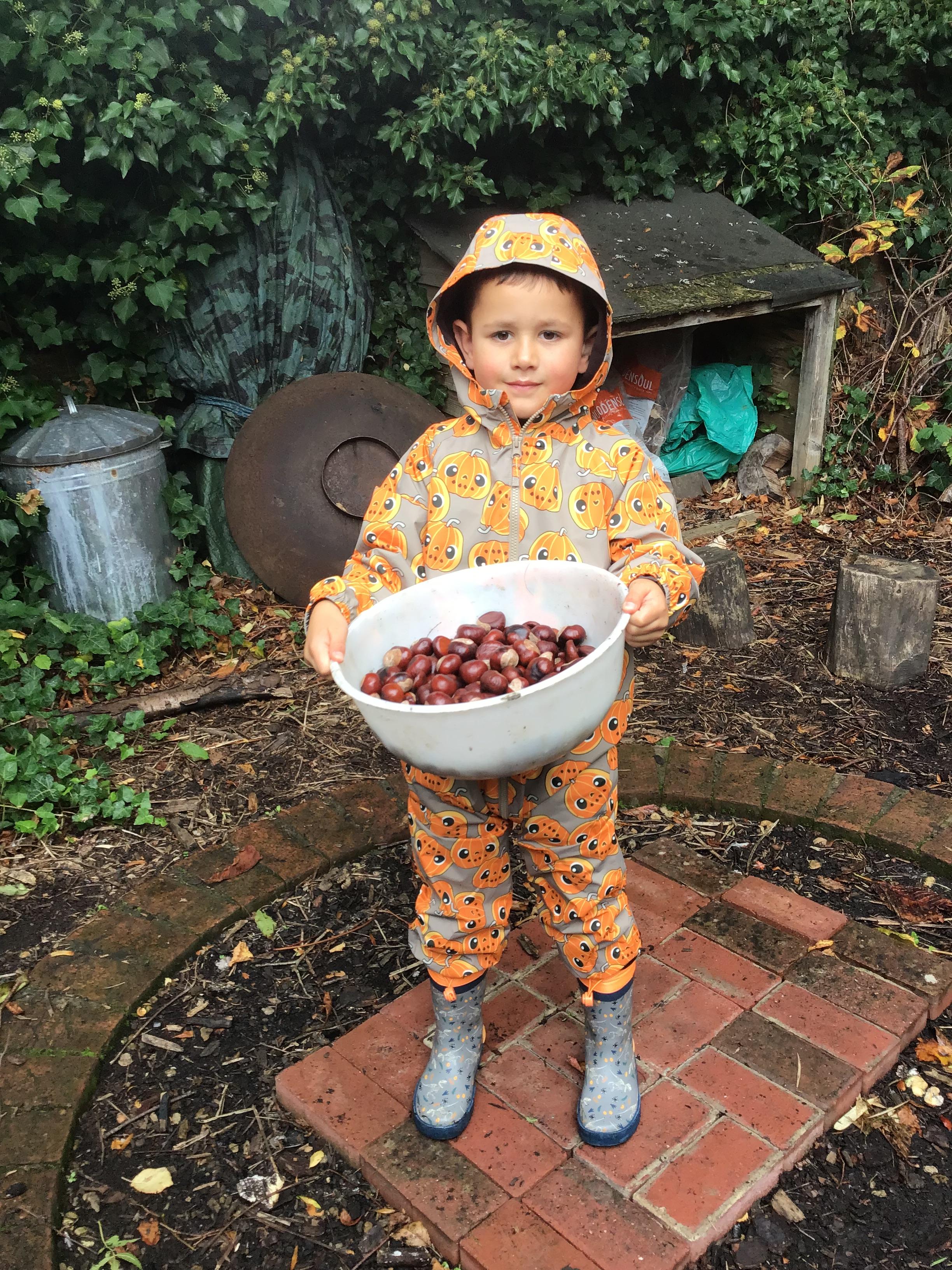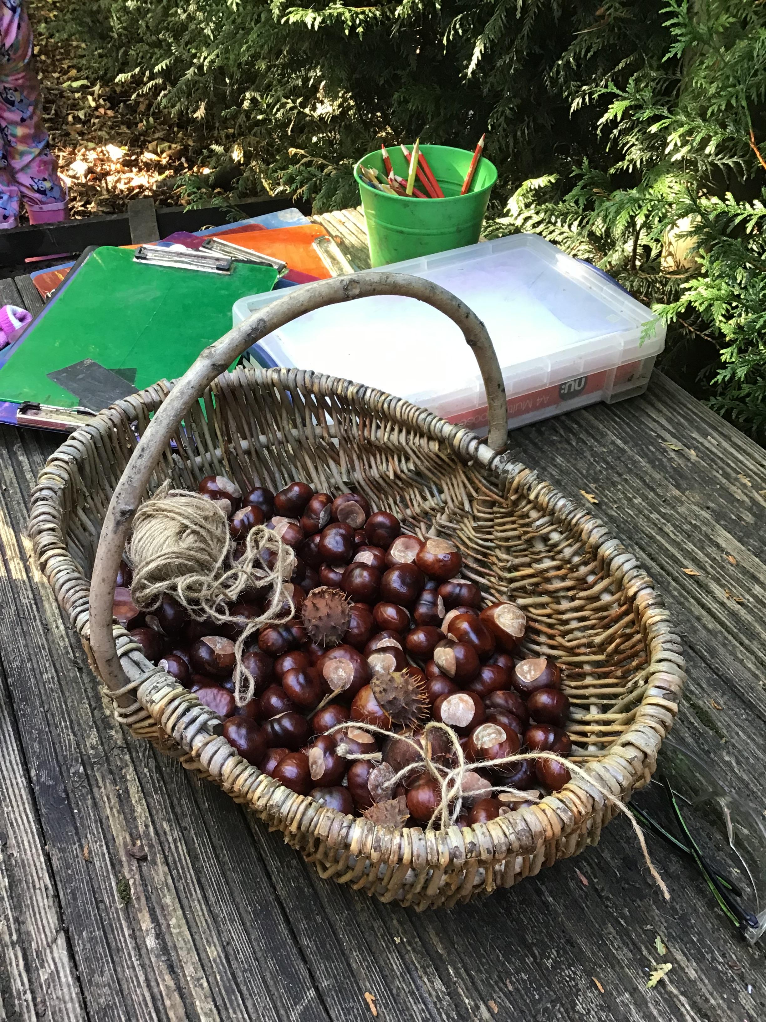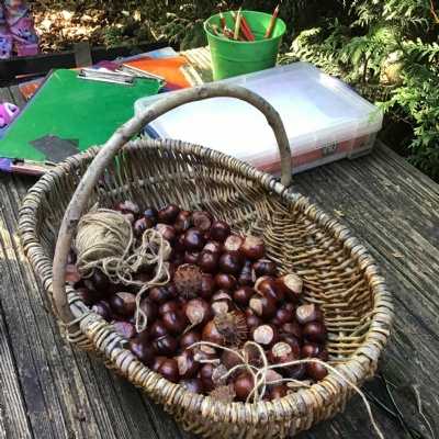 Last session of Forest School with lots of conkers