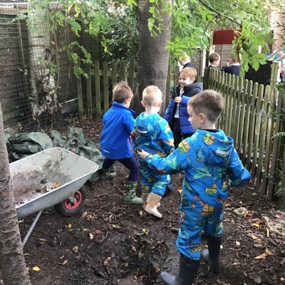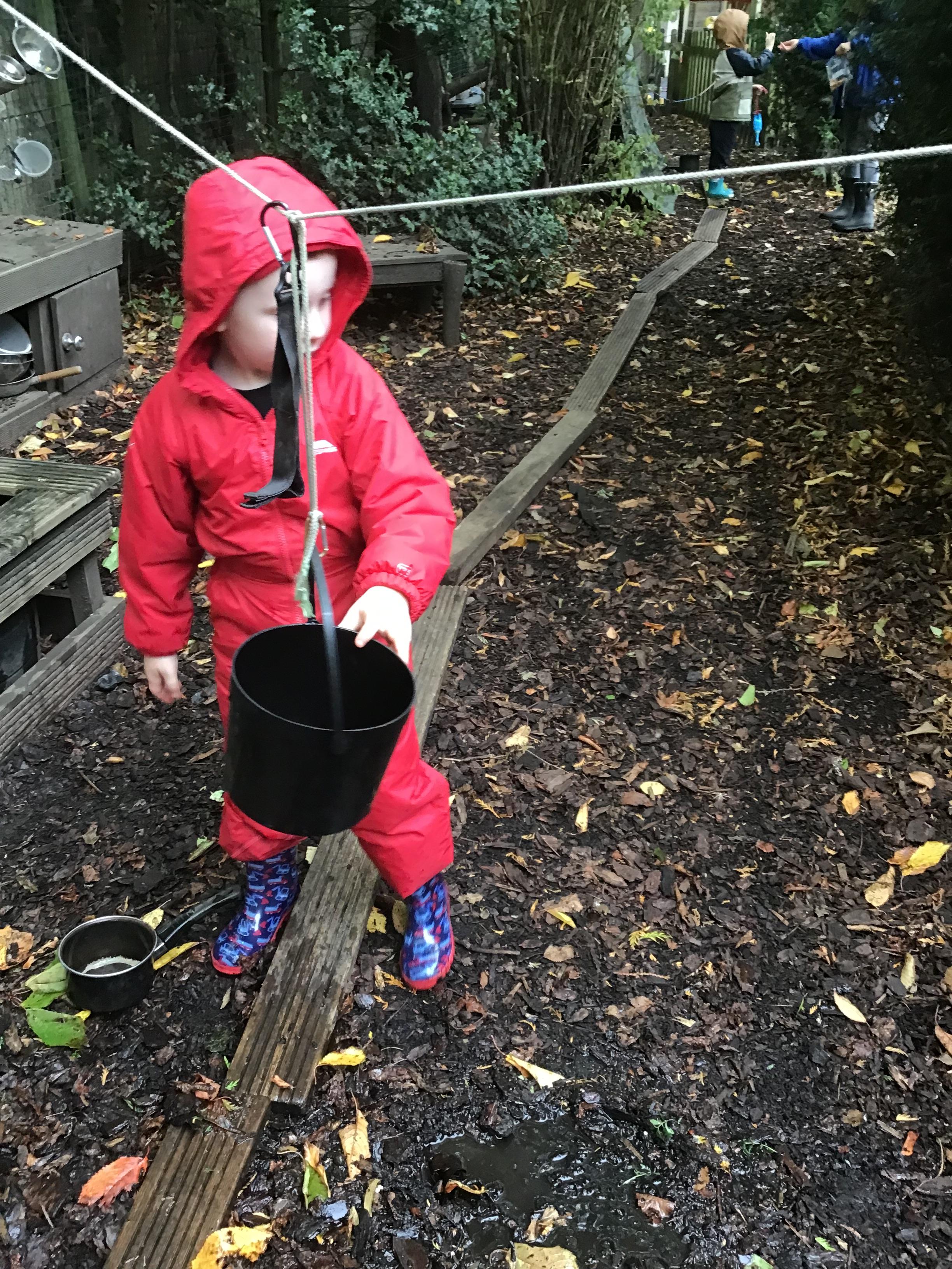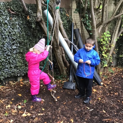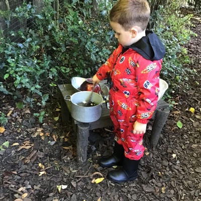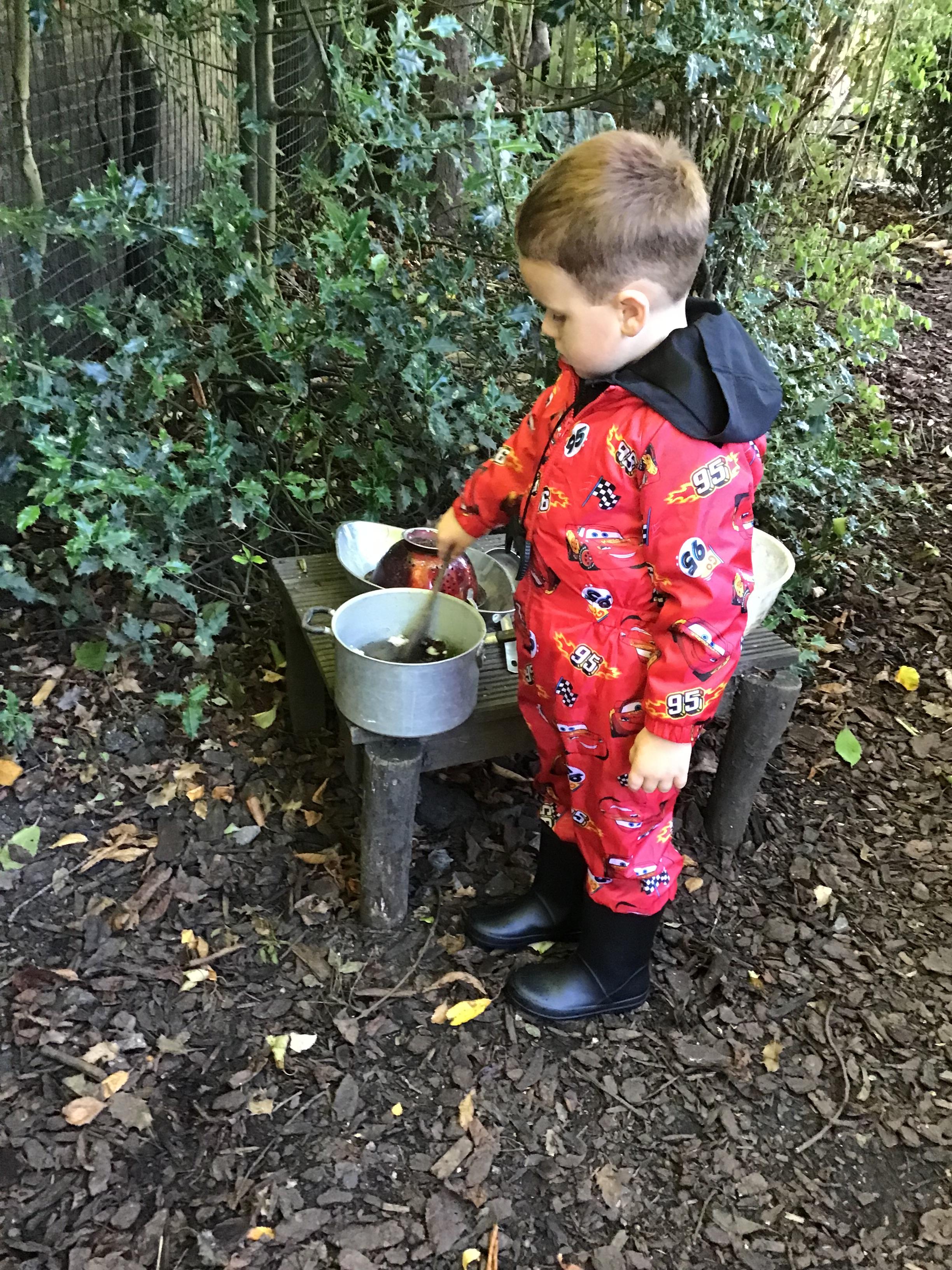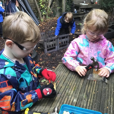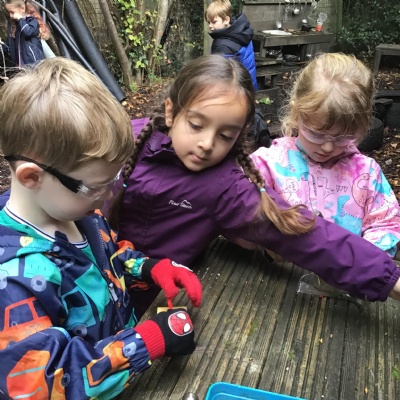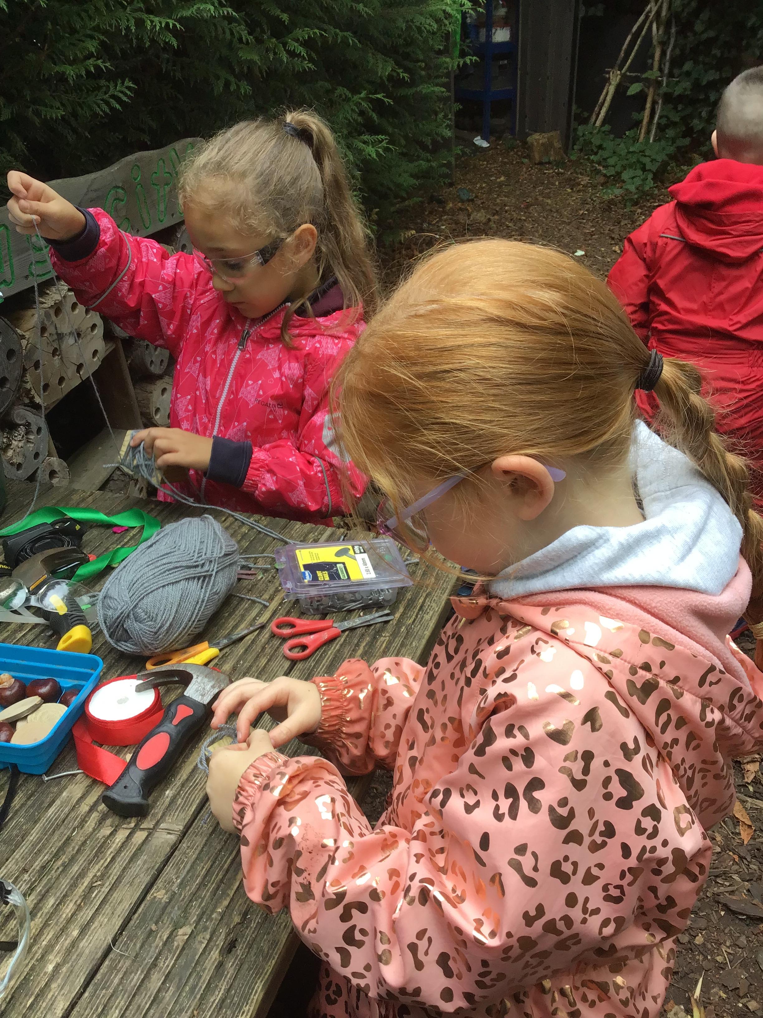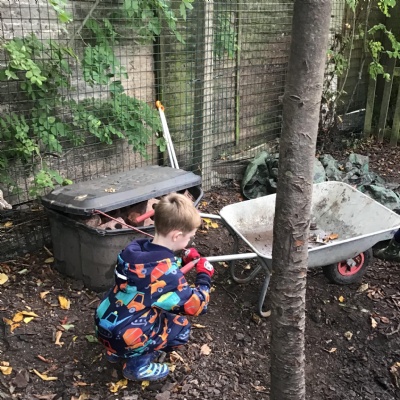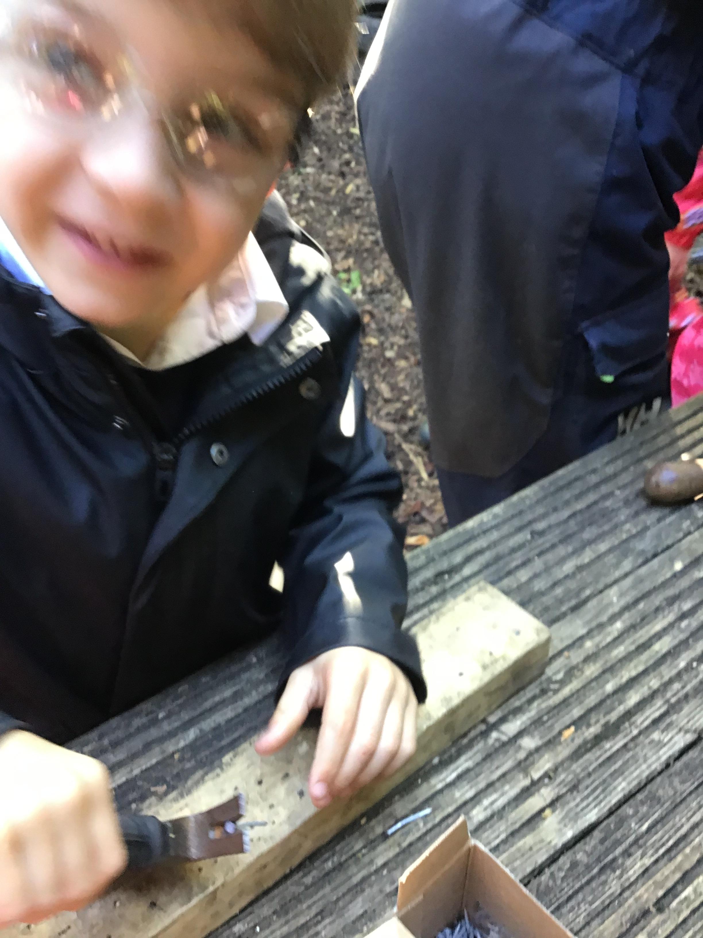 Last session of Forest School with lots of conkers